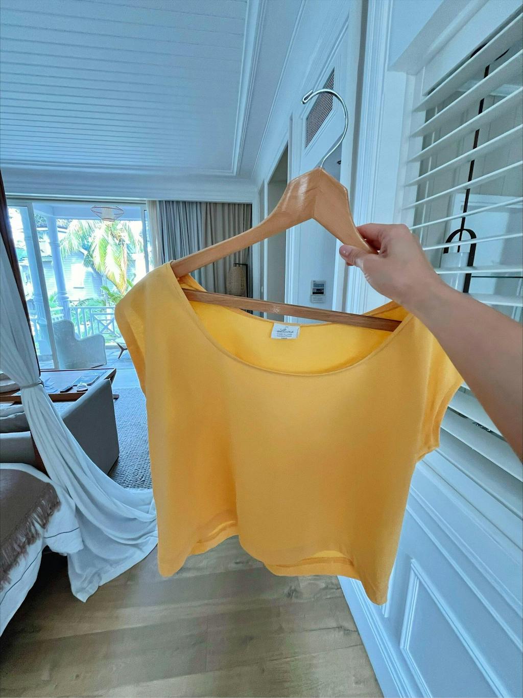 Jeg elsker min nye gule top – den er så blød og sidder godt. Den er fri for giftstoffer, så den er sund for min hud og god for miljøet. Jeg vil købe denne top i andre farver!